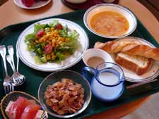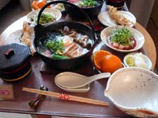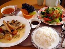 ちょっと,いやかなり,豪華な病院のごはん.右下は鍋焼きうどんです.椿ともみじが盛りつけられていたこともありました.もりつけのおどろきもおいしさの構成要素. UZULAB-sh.
