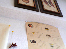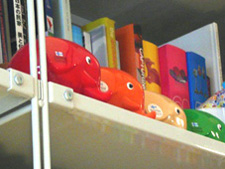 写真1:デンマークのフレンステッド社(FLENSTED MOBILES)の気球モビール.以前からぶらさがっていたのですが,ベッドメリーの代わりになりそうです.気球なので,空気が動くとくるくると一緒に動きます.デンマークでは,昔からモビールが作られているそうです.写真2:カレーのカレーンダー.写真3:1973年から作り続けられているぞうの貯金箱.