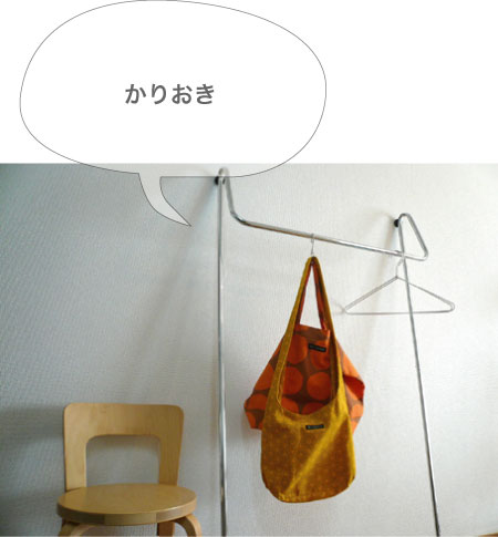 写真1:コート掛け.ステンレスパイプのシンプルなもの.実は,服を掛ける部分が座屈していて,よりコンパクトになっています.