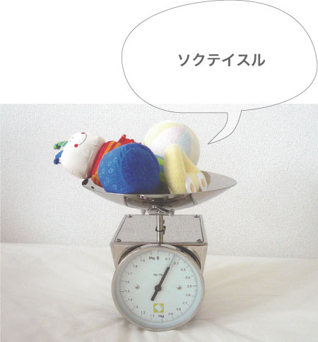写真1:おもちゃを測ってみました.Viceversaのステンレスキッチンスケール.